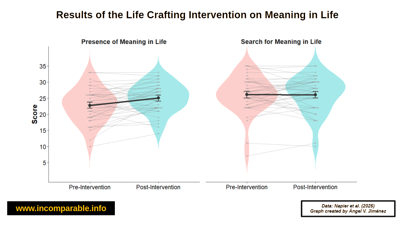 The life crafting intervention was effective in significantly increasing the presence of meaning in life.